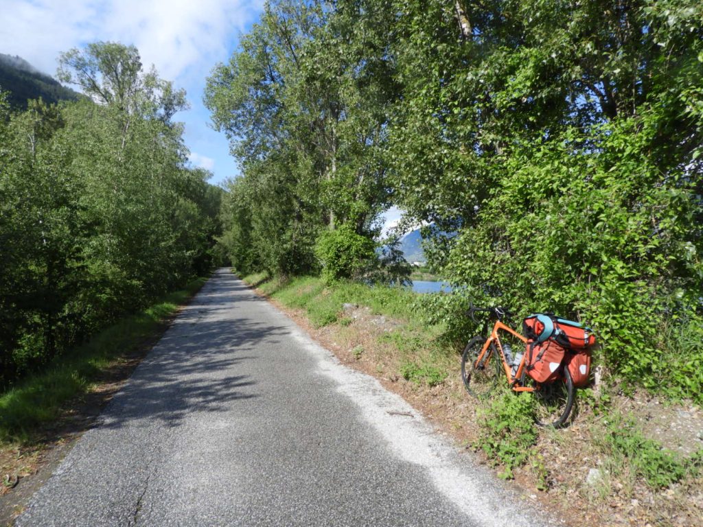 Erwacht mit Regen aber nach etwas länger liegen machte die Sonnenstube ihrem Namen alle Ehren. Es wurde ein Genussfahren: Ideale Teperatur, flach der Rhone entlang, und dann am Fuss des Simplon mit einem Coupe Romanoff den Erdbeerduft, der mich entlang der Beeriplantagen schon lange begleitete, in Kraft verwandelte.