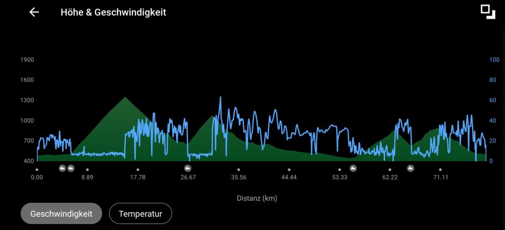 Die beiden Zusatzpässe entpuppten sich aber schon bald als Sauhund 3 und 4. Zwar idyllische kleine Bergsträsschen durch schöne Täler, aber die Durschnittssteigungen verbargen, dass neben flacheren auch immer wieder steile schmerzende Abschnitte bis 14% kamen, die mich langsam aber sicher etwas an die Leistungsgrenzen brachten.